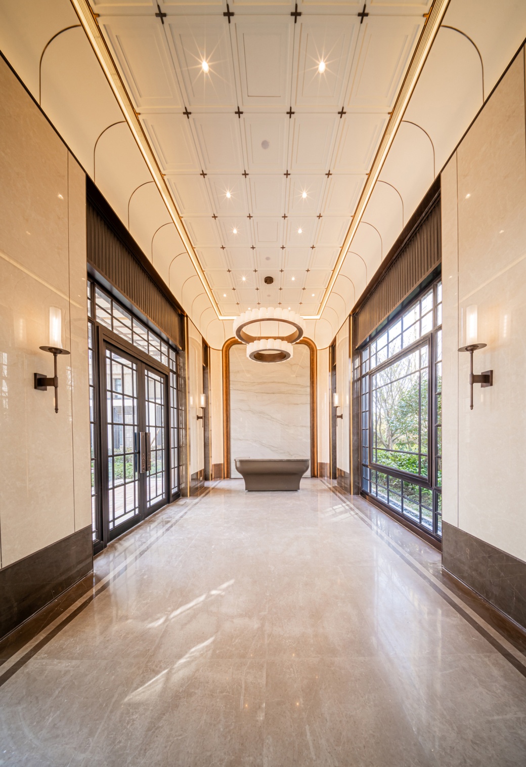 将名贵树种、大理石材、铜质元素融入社区肌理的公区美学,宝华率先提出并应用兼推广;精装车库、首层双大堂设计,又是宝华的“发明”;交付级预售,还是宝华第一……