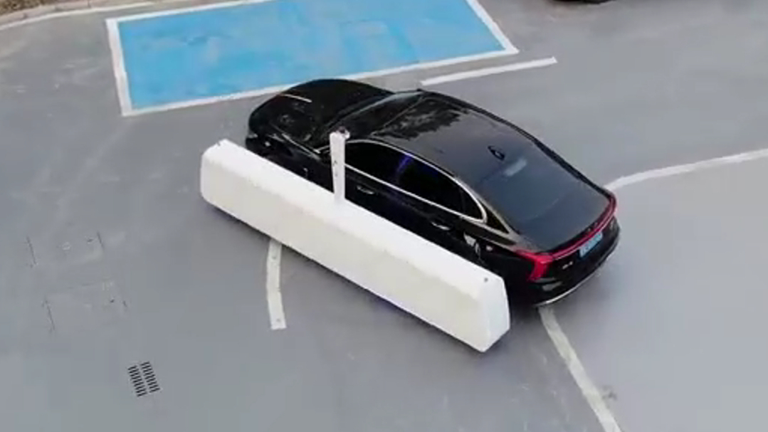 车库在地面设立了8个出入口,其中一个出入口处可利用AGV搬运机器人存取车,记者来到该出入口,观察停车全过程,车主将车辆停至在地面指定位置后,即可下车离开驾驶位。通过“铁建智停车”小程序提交停车指令,AGV搬运机器人利用机械臂将车送到车库入口,经由拉链式传送带顺着电梯送至车库,智能系统再将车停入地下车位,地面到地下的停车过程实现了无人化。