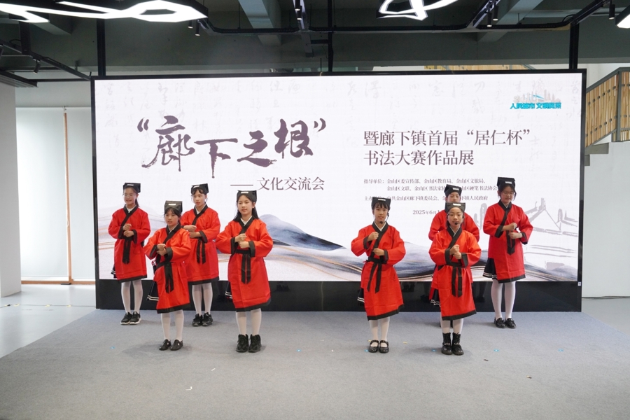 “你拍八,我拍八,学有榜样效果佳,元代居仁历代夸。你拍九,我拍九,困难面前不低头,勤学苦练争优秀……”6 月 11 日,随着清脆童声吟诵的拍手歌《写好字》在现场响起,孩子们一边拍手一边吟诵,“廊下之根” 文化交流会暨金山区廊下镇首届 “居仁杯” 书法大赛作品展正式开幕。
