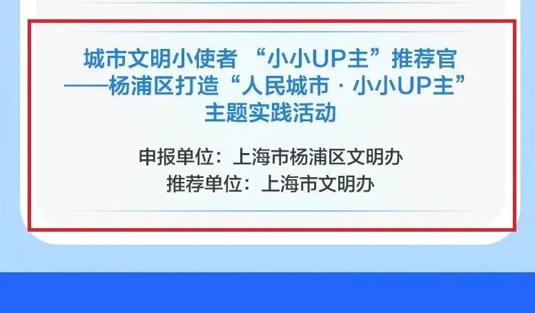 杨浦区依托区域内互联网企业优势,自2022年起连续三年开展“文明小使者”主题实践活动,聚焦未成年人群体,打造“人民城市·小小UP主”品牌。