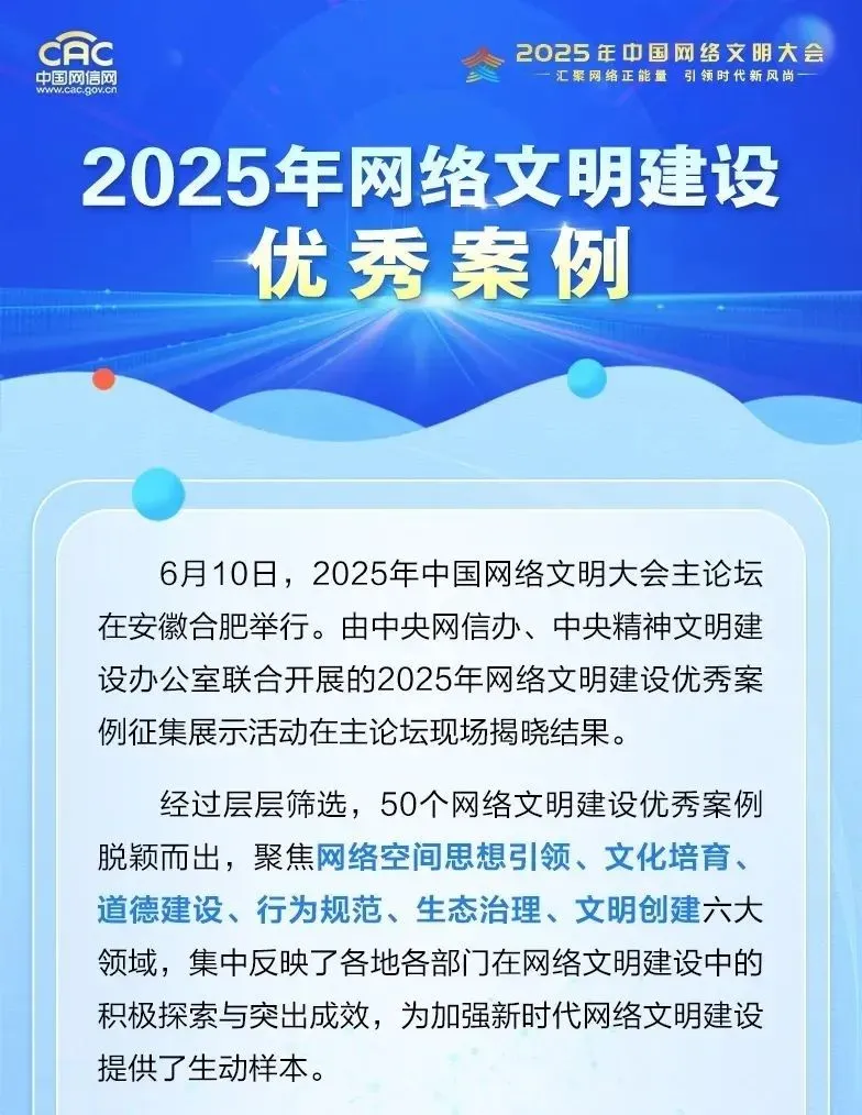 今年1月,中央宣传部办公厅、中央网信办秘书局联合发文开展2025年网络文明建设优秀案例征集展示活动,受到社会各界广泛关注、踊跃参与。