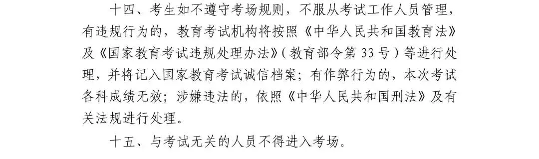 4.遵守答题指令。开考信号发出后,考生方可开始答题;考试结束信号发出后,应当立即停止答题,安坐原位。考试结束信号发出后若继续答题的,将按照考试违规进行处理。考试结束,考生应听从考点指挥,带好随身物品,有序快速离场,切勿滞留考点。