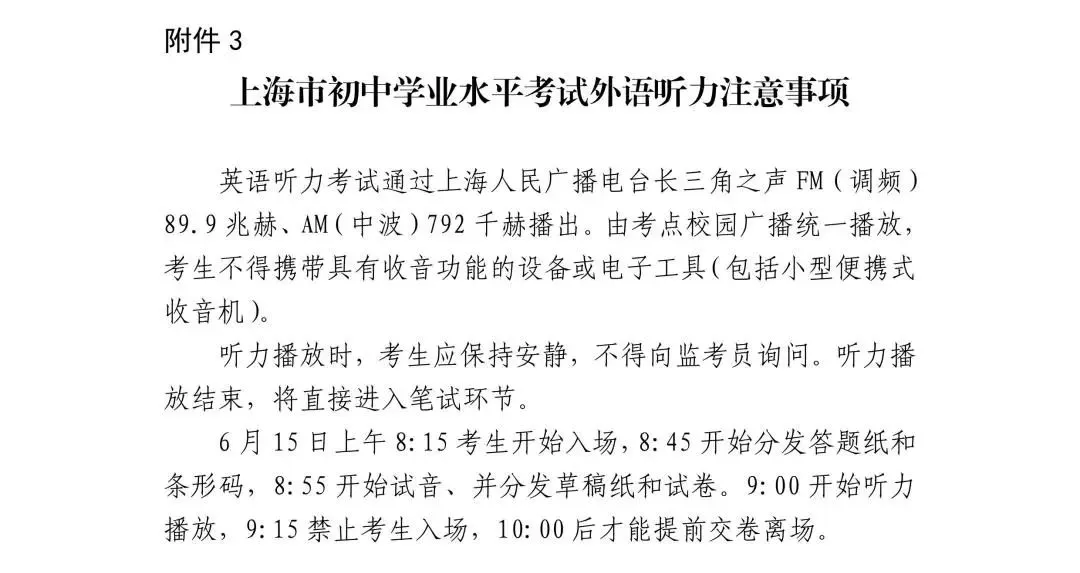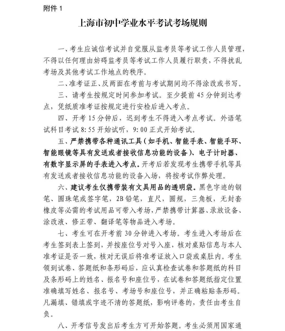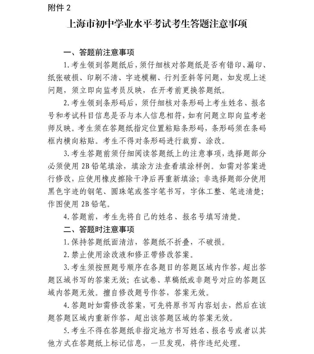 2025年上海市初中学业水平考试将于6月14日至15日举行。为确保考生顺利参加考试,特提醒考生注意以下事项↓