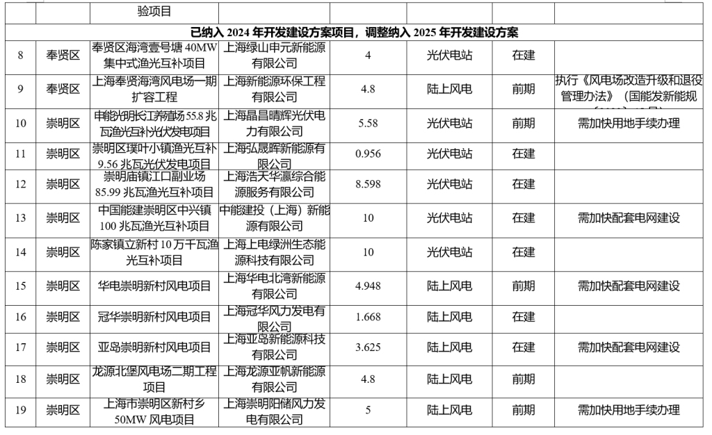 上海公布今年陆上风电、光伏电站开发建设项目19个,过半在崇明