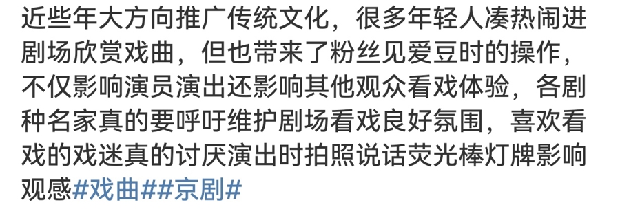话剧、音乐剧、舞剧不应出现未经授权的拍摄,早成为观众共识,但到了戏曲,这一剧场惯例常被打破。演员这边刚谢幕,那边照片、短视频网上漫天飞。