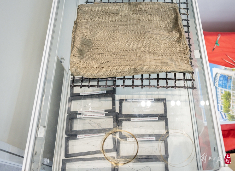 工作人员现场展示成功制备出的直径仅10-20微米(头发丝的1/5到1/6)的超细纤维。