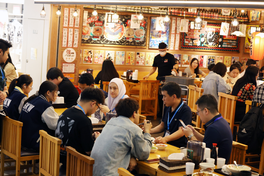 午餐时分,世博源底层一家日料简餐店座无虚席。