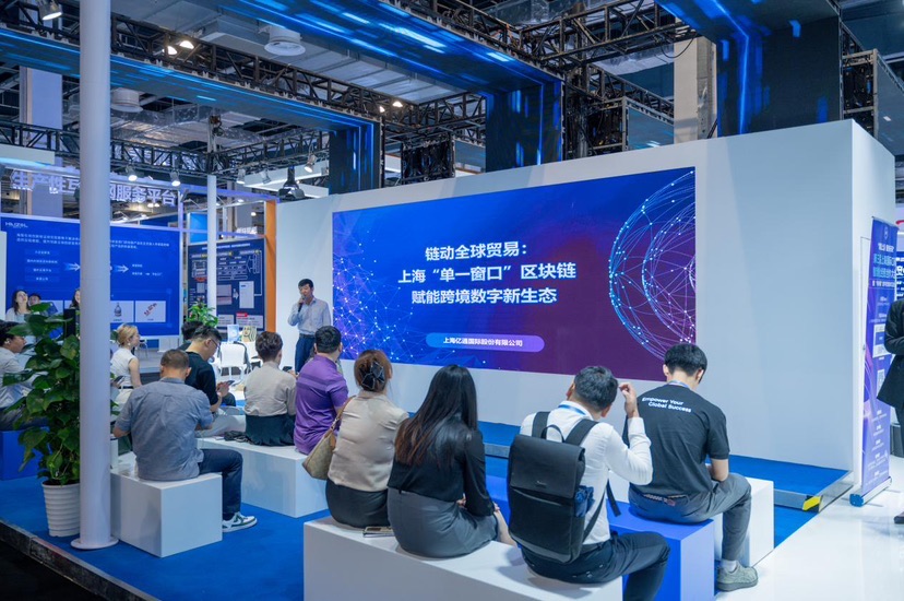 东方网记者曹磊6月13日报道:6 月 11 日至 13 日,第十一届中国(上海)国际技术进出口交易会正在上海世博展览馆盛大举行。作为国际技术贸易重要平台,本届上交会吸引着 900 余家展商、10 余个参展国家和地区、20 余个深度参与的省区市及 5 万余人次全球观众,构建起跨域联动的产业生态。上海浦江数链数字科技有限公司、上海亿通国际股份有限公司、长三角数链 (上海) 网络基础设施有限公司共同承办,以 “数智上海 链创未来” 为主题的区块链展区也首次亮相上交会,180平米的展示空间内汇聚跨境贸易、口岸服务、航运物流、公共服务等四大领域超 20 个区块链应用场景,全景呈现着上海在区块链产业应用领域的创新实践与生态布局。 三大主题展区,营造技术与场景融合新体验 “数智上海 链创未来”区块链展区以 “技术架构+场景应用” 为设计内核,构建了可交互的产业生态体验空间。展区划分为 “领航・生态共荣”“筑基・万物互联”“拓景・多维实践” 三大主题单元,通过动态数据大屏、政策解读装置及数字场景模拟等展陈形式,立体展现区块链技术的产业协同路径。观众可通过现场路演、交互式装置,直观感受区块链技术的运作范式。 十余家重点企业,前沿区块链应用场景集中展示 本次展会邀请十余家区块链行业重点企业参展,集中展示区块链前沿应用。展区采用开放式空间设计,以科技感展陈造型分区呈现“沪贸批次贷”主动授信、有色安心链、T/T汇款、智贸链通、“跨境通”(离岸贸易)、上海国际贸易“单一窗口”单证保管箱、太保数字链、浦江从法链、“一带一路”数字咖啡产业链等标杆场景。观众通过可视化大屏与视频解说,可以深入了解区块链在跨境贸易、口岸服务、航运物流、公共服务等领域的落地成效。