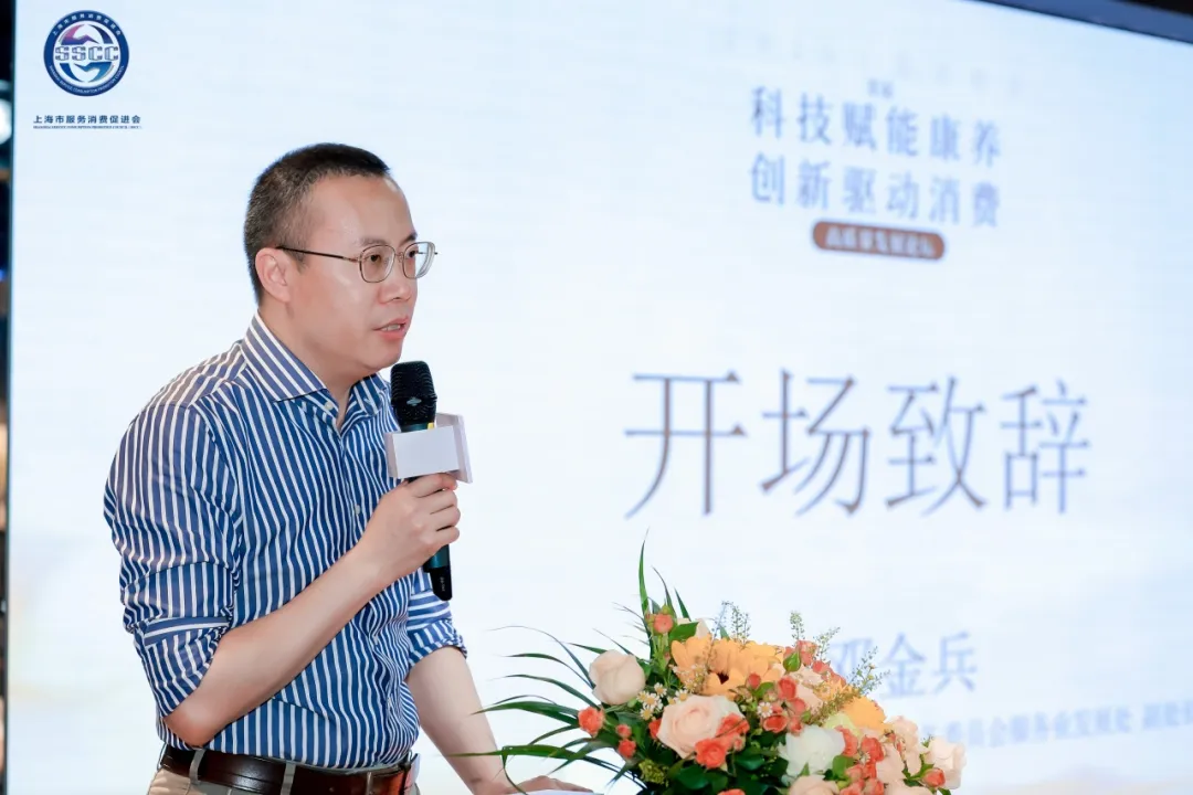 上海市商务委服务业发展处副处长邓金兵首先致辞。他表示,上海市服务消费促进会智慧康养分会的筹备成立恰逢其时——既是落实人口老龄化国家战略、推进养老科技创新发展的鲜活实践,也成为推动消费升级与产业转型的有力抓手。希望分会能够汇聚众智,推动康养产业从“传统保障型”向“科技驱动型”跃升,从“民生短板”变为“消费热点”。