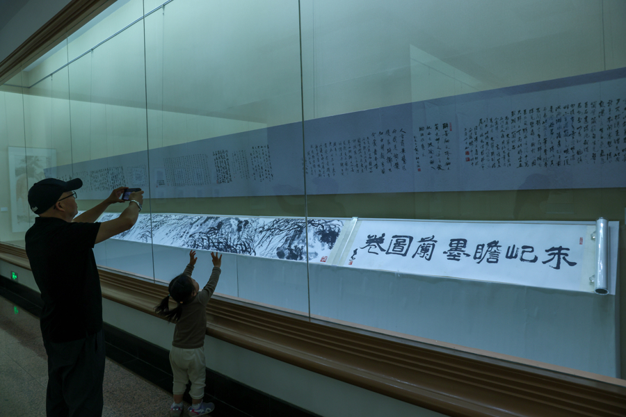 朱屺瞻创作于约50年前的《墨兰图卷》系首度公开展示。 文汇报记者 叶辰亮摄
