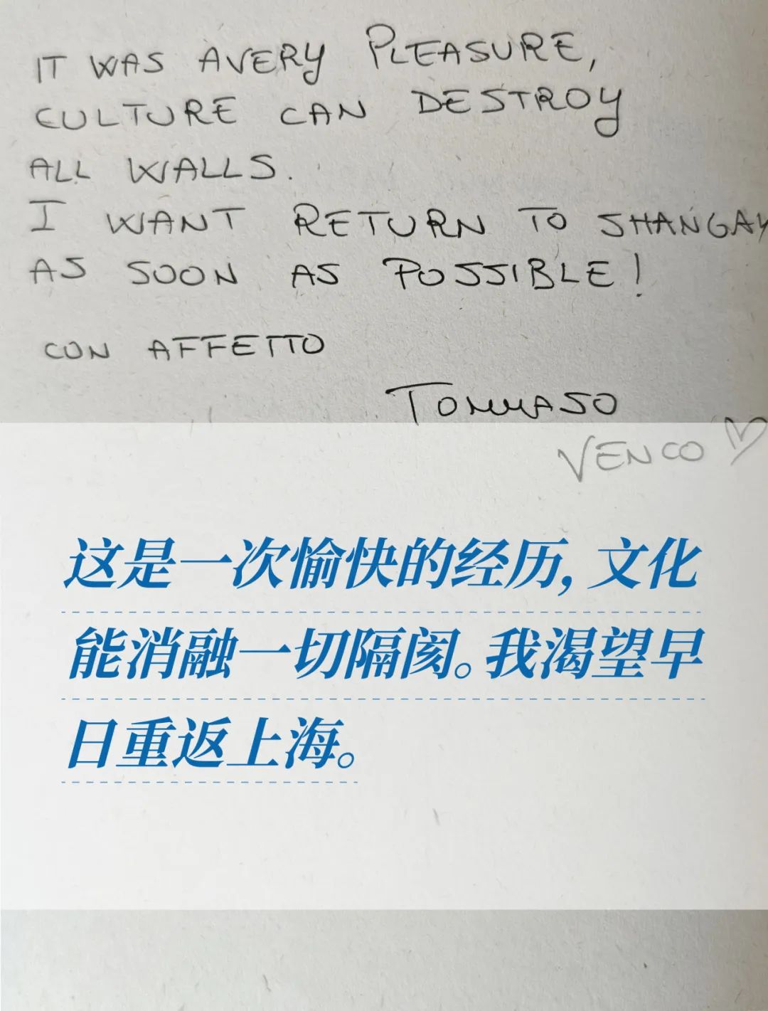 互动参与,在米兰体验“上海时刻”。活动现场同步展映《上海,未来之城》《舞台》《上海,玩转夏日》等上海城市形象短视频,市民游客游走于艺术笔触与影像美学之间,此刻艺术照进现实。丰富多彩的“SHANGHAI LET'S MEET”互动项目更吸引大小朋友玩得不亦乐乎,有的在“上海印象”艺术海报前精挑细选,选好后再盖一个上海的城市印章,有的拿着心仪的“上海印象”作品,填上缤纷的色彩,有的戴着上海城市对外推广标识徽章、围巾,去喜爱的“上海印象”展品前拍照留念。留言簿上满载着对双城友谊的祝福,更写满对上海的喜爱与向往“没有比策划一个艺术项目向米兰展示上海更合适的了”“艺术让不同文化找到共鸣,好期待去上海亲自感受她的魅力” “上海是一座令人惊叹的城市,这个活动凸显上海同米兰的共通之处”“我一直想去上海,SHANGHAI IN MY MIND艺术展让我更想马上就去”……