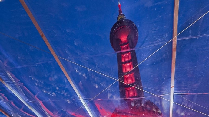 世界献血者日,东方明珠、上海中心大厦等地标亮起“生命红”
