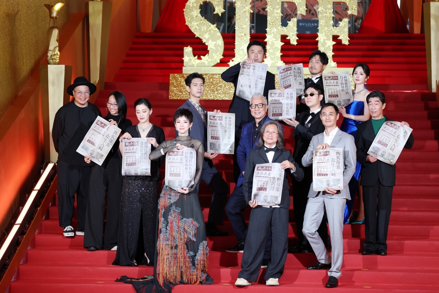 当天18时,《酱园弄·悬案》剧组第一个走上本届上海国际电影节红毯,每位主创手中都持有一张在头版头条印有“真实奇案,众生入局”的文创报纸,别有意趣。