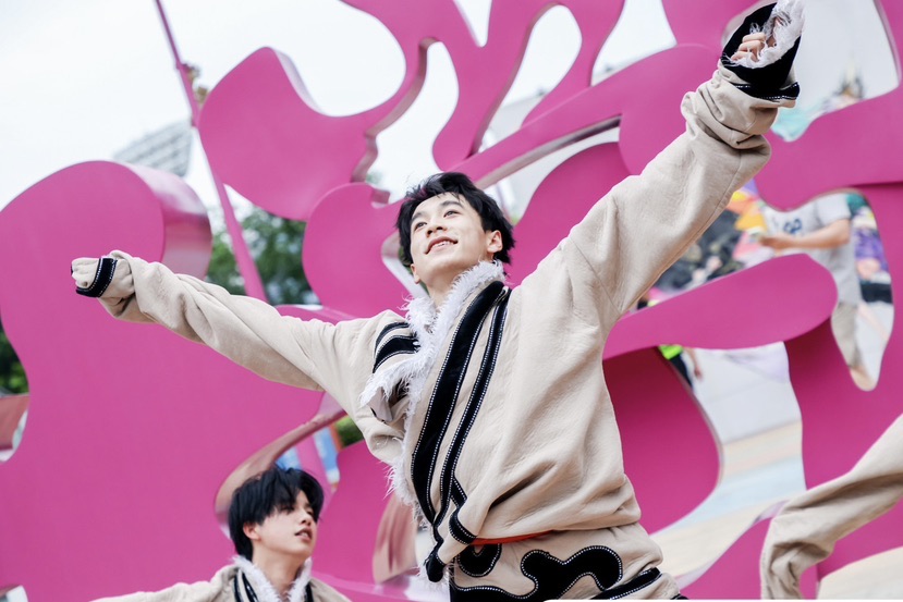 周末的傍晚,丝路非遗快闪巡游成为大学路最耀眼的风景线。巡游队伍身着独具特色的少数民族非遗服饰,宛如一幅流动的丝路风情画卷。他们沿着充满活力的大学路步行街行进,衣袂飘飘,光彩夺目,瞬间点燃了整条街道的热情。西北民族大学带来的豪迈舞蹈《雪域汉子》、悠扬辽阔的马头琴联奏、肃南民族歌舞团华美的裕固族舞蹈《盛装舞》、别列克组合苍劲悠扬的阿克塞哈萨克民歌《牧羊马》、甘肃省歌剧院神秘灵动的白马藏族舞蹈、西北民族大学舞蹈学院再现敦煌神韵的《飞天伎乐》,每一个节目都赢得观众阵阵掌声。压轴登场的剪纸服装秀,巧妙地将传统剪纸技艺与现代时装设计融合,带来令人惊艳的视觉冲击。而在百联滨江购物中心,刚柔并济的“绵拳”拳法、“上海工人大锣鼓”的铿锵节奏“沪剧”的经典唱段,引购物人群纷纷驻足,传统技艺与现代商业空间碰撞出别样火花。