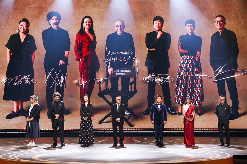 昨夜,第27届上海国际电影节金爵盛典举行。本届金爵奖主竞赛单元评委会主席、意大利导演朱塞佩·托纳多雷说,能在如此梦幻氛围中享受电影并从中学习何其荣幸,能同世界各国的同仁交流观点,这件事本身就传递着和平与共存的信号。他动情地说:“致敬上海,致敬和平,电影永生。”开幕影片《酱园弄·悬案》的导演陈可辛第一次在内地拍戏,选择的取景地就是上海,从第一部到新一部,他说自己对上海怀抱特别情感:“从小到大,我都听爸爸讲上海,这里一直是他的梦想之地。”