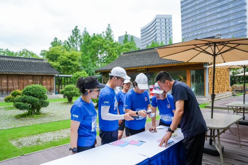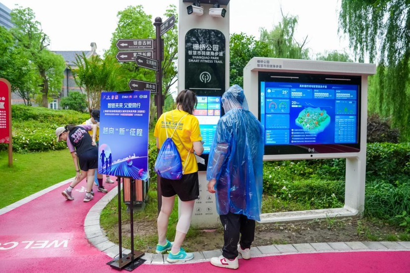 赛事设置亲子组与精英组两大组别,参赛队伍穿梭于栅桥公园书院、金鼎香樟苑东区、东方有线、祁连社区市民健身驿站和栅桥绿地智慧健身步道这些真新街道创新创业地标。在栅桥公园书院,各组别共同撰写对30年后真新街道的寄语投入“时空胶囊”,以笔墨寄托美好期许。于金鼎香樟苑东区化身环保“新”卫士,在趣味任务中强化环保意识。在东方有线点标处挑战拼图,通过团队协作沉浸式体验6G技术元素,感受万物智联的未来生活。此外,亲子组选手在栅桥绿地智慧健身步道完成跑步扫码任务,精英组选手则需在丰庄四村祁连社区健身驿站接力使用划船机,以不同方式完成智慧挑战,全方位展现团队协作精神与运动风采。