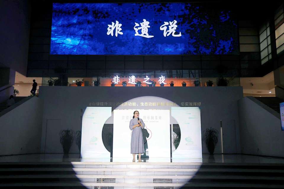 活动开幕式上,《非遗说》节目全新亮相,该节目以非遗保护优秀案例为例,特邀非遗推介官展开非遗宣传推介,分享非遗保护成果经验。沧海盐田盐文化博物馆代表王黎玲以上海市精品展览“盐文化民俗非遗展”为例作《非遗与展览》主旨演讲;金山嘴渔村旅游公司代表周秋兰以“上海市非遗与旅游深度融合发展优秀实践案例”——金山嘴渔村“非遗+”融合模式为例,作《“非遗+”文旅融合》主旨演讲;金山农民画非遗传承人陈惠方以绘本《金色童年》的海外出版故事为例,作《非遗走向世界》主旨演讲。