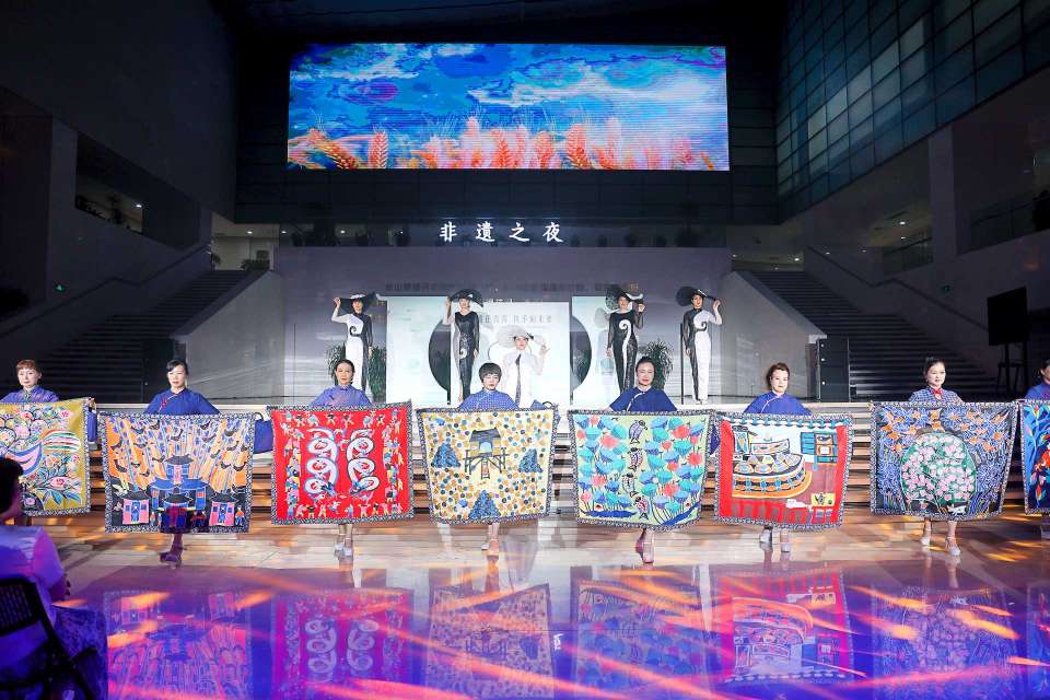 与此同时,“非遗之夜”非遗时尚秀演精彩上演。明清服饰、创意扎染、传统汉服、海派旗袍......一场传统服饰与非遗跨界融合的时尚秀演在博物馆“非遗之夜”登场。