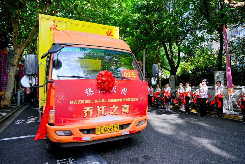 6月16日上午,上海市静安区海防路、新丰路、西康路零星旧改项目举行集中搬场仪式。