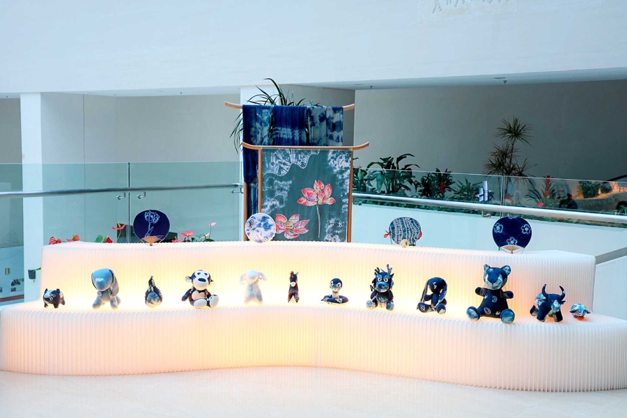 当晚,巨型扎染艺术装置《蝶恋花》在金山区博物馆“非遗之夜”惊艳亮相,成为全场关注的焦点,大家纷纷打卡拍照。该艺术装置由土布染织技艺非遗传承人何愔为2025年金山区“文化和自然遗产日”宣传展示活动特别打造,诠释着“非遗正青春”的时代主题。