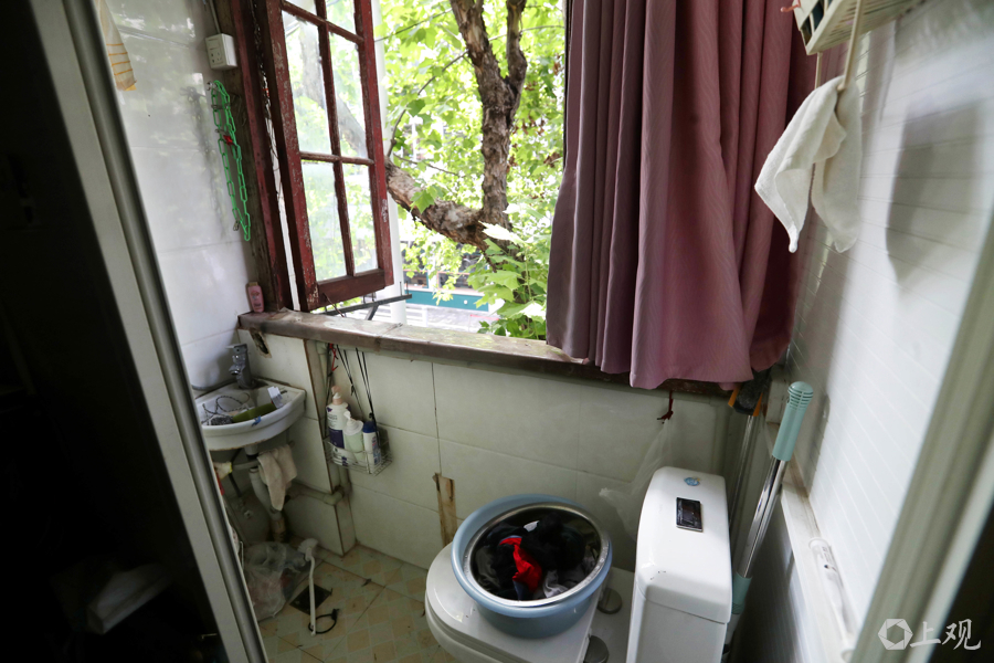 他们住在朝南的前厢房,为了解决卫生独用的问题,6扇木质长窗分了两扇隔成卫生间。三代人住21平方米的房子,毛阿姨说,虽然挤点但还能隔成两个房间,比那种一个房间住两对夫妻,中间用帘子拉着的要好。但是儿子和女友谈了很长时间恋爱,“这种房子结婚我们也觉得亏欠他们”。