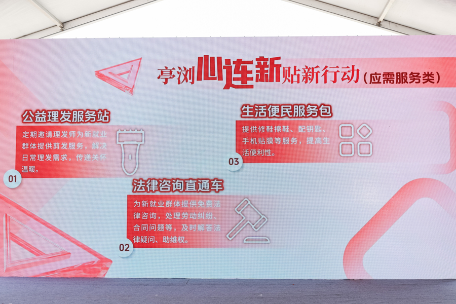 为了让新就业群体在奔波途中感受到全方位的温暖,两地共同推出暖新“亭浏”五大行动,涵盖亭浏“向新力”蓄能行动、亭浏“新食惠”优享行动、亭浏“心连新”贴新行动、亭浏“新守护”安心行动、亭浏“幸福家”守护行动,通过整合优质资源、创新服务形式,为新就业群体提供全链条、精细化的贴心服务。