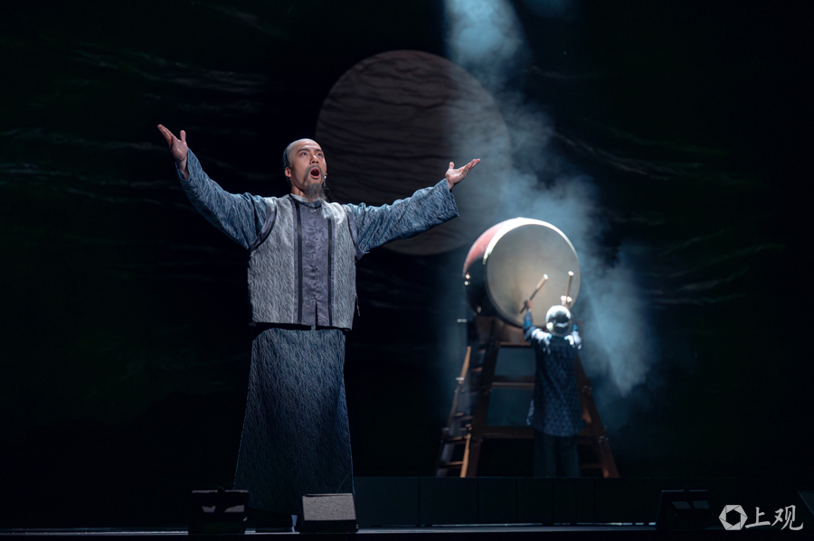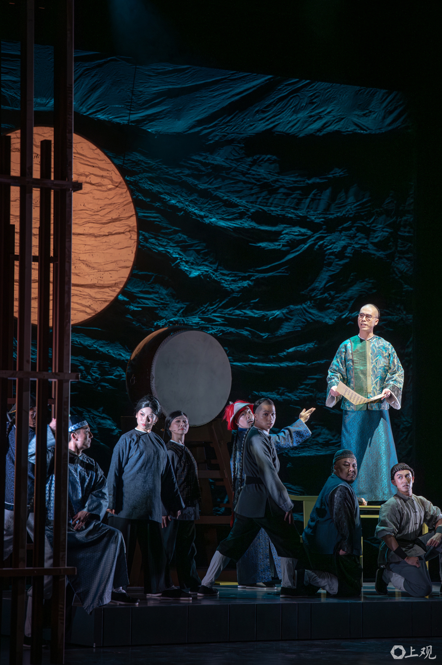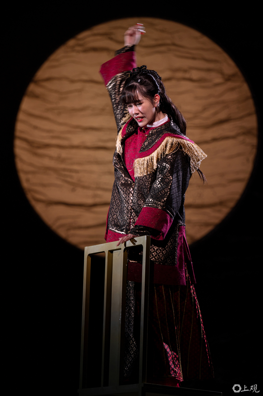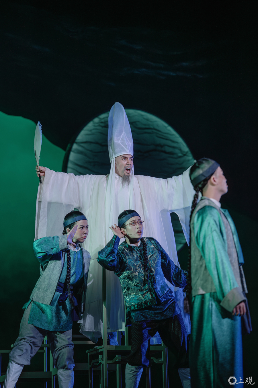 舞台上,编排导演及编舞林俊浩的设计颇具巧思,群戏场面中演员们整齐划一的动作与极具张力的肢体语言,配合着音乐节奏,将法庭的庄严肃穆与戏剧冲突充分展现;而在情感细腻的对手戏部分,演员们舒缓的动作与流转的眼神,又将人物内心的挣扎与纠葛娓娓道来。舞台美学指导黄逸君打造的场景效果上佳:古色古香的公堂布景、充满神秘感的阴间场景,通过道具的巧妙变换与灯光色彩的转换,实现了不同场景之间的无缝衔接,为观众营造出身临其境的观剧体验。