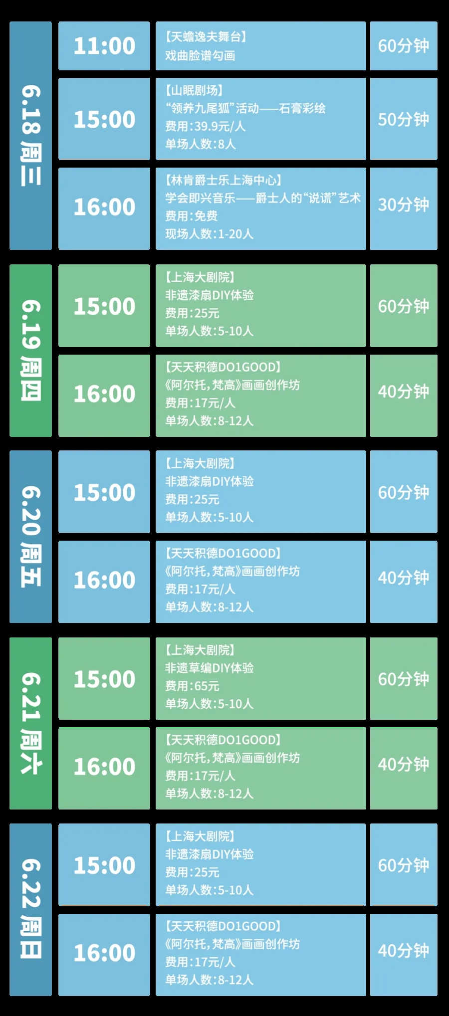 “天天有戏”演艺市集联动同期“豫上好戏”、“豫园夏日奇幻夜”,新天地“港式风情集”,新世界集团“来南京路快乐一‘夏’”等商圈活动,为市民游客提供更多喜欢上海的理由。