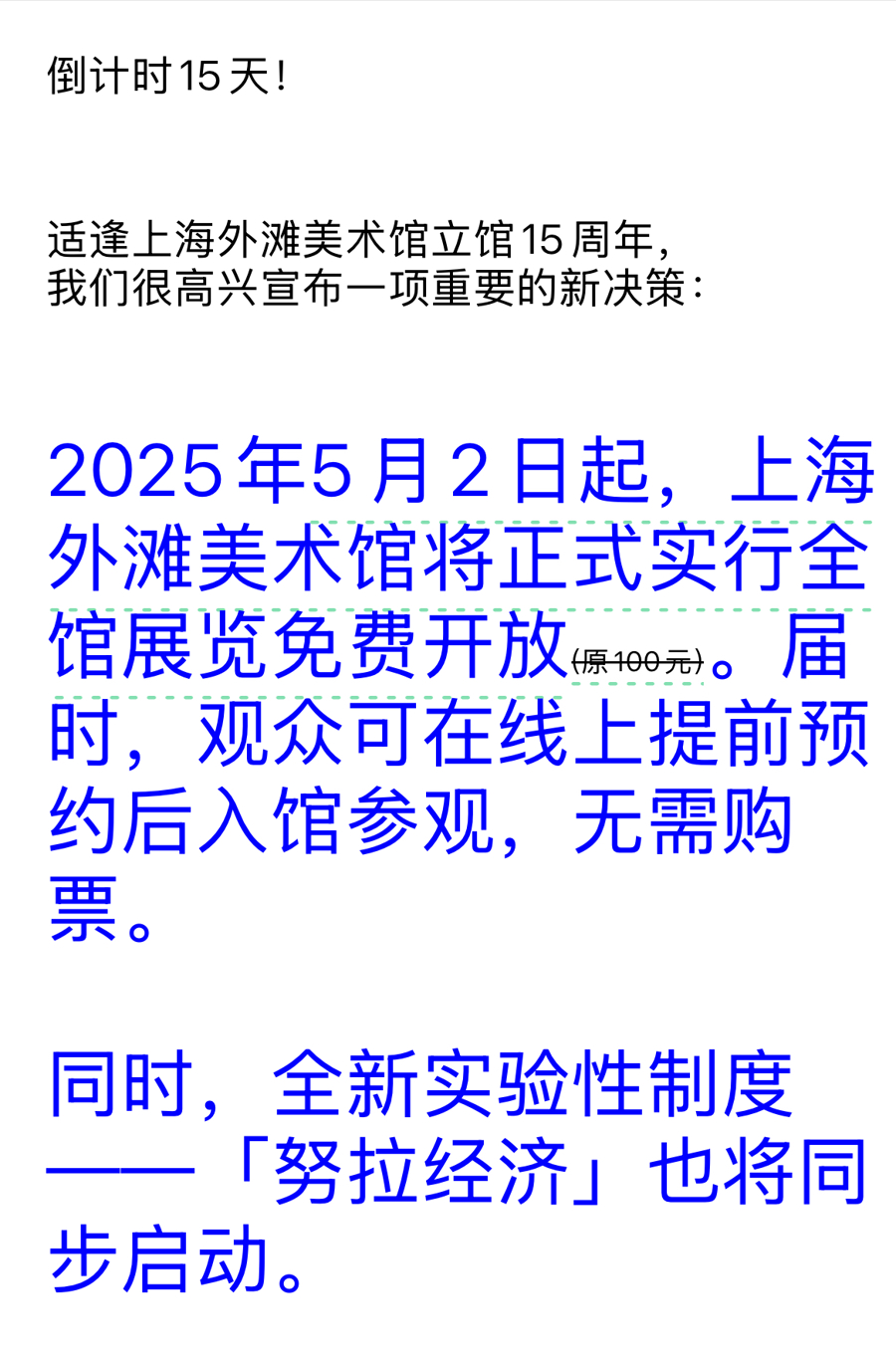 今年4月,上海外滩美术馆通过公众号宣布将免费开放。