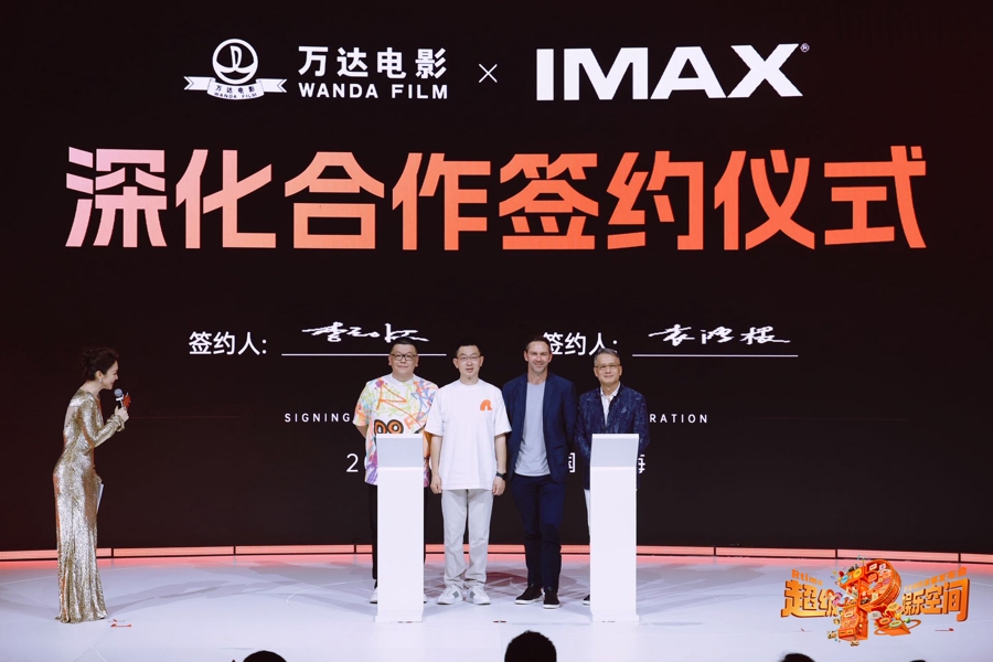 发布会现场,万达电影与IMAX“深化合作”签约,万达电影将在原有涵盖123套设备的协议基础上,追加多至27套IMAX激光系统,同时,双方也将持续探索IMAX影厅多元化应用和内容整合创新。