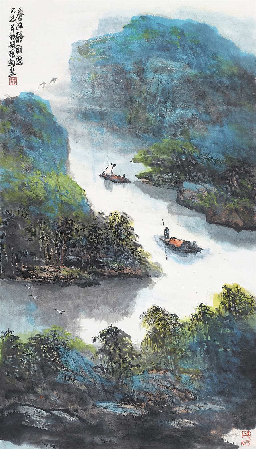 壮丽山河是艺术创作的永恒母题。古今文人笔下的江山,既是自然的映照,更是心灵的风景,是“心画”的终极呈现。百岁高龄的林曦明馆员以一张《春风好时节》揭开本次展览的序幕,寥寥几笔,意趣横生,杨柳、水牛生动展现了春日生机,充满自然意趣。92岁高龄王克文馆员的《春夏秋冬》四条屏,尽显传统功力,将北方山水的壮美与南方山水的秀美融合而成,塑造春融洽、夏浓荫、秋苍茫、冬沉寂的意境。87岁的胡振郎馆员虽身在海外,仍然坚持新创作品《春江静韵图》,让人不禁眼前一亮,树木葱郁,江水静谧,渔舟泛波,传统笔墨与西方色彩交相辉映,构成了山水生命旋律。宣家鑫馆员的书法作品《自作诗<赞江山>》,古朴中不失轻灵,洒脱中蕴藏拙意,“风拂千嶺翠,浩渺看今朝”。 回望百年征程,中国共产党团结带领全国各族人民,书写了不朽篇章。94岁高龄汪观清馆员的作品《霹雳》以动态视角,展现“好八连”精神,弘扬红色文化。“军事好,如霹雳!”汪观清曾一次次亲睹八连练兵,不禁发出赞叹。萧海春馆员的作品《洪谷》,体现革命先辈的精神,如太行山上的青松,经霜愈翠、永垂不朽。乐震文馆员的《燎原之火 力量之源》,描绘的是中共四大纪念馆,他实地考察、写生,用情、用心呈现这座庄严大气的“红色课堂”,唤醒更多人的红色记忆。 上海是海派文化的发源地,既有中国江南传统文化的古典与雅致,又有国际大都市的现代与时尚。韩天衡馆员的《和餘呈祥图》用墨率意,写意与工笔交汇,画面祥和,寓意美好。吴承斌馆员的《篆刻印屏》,线条流畅、遒劲挺拔、势雄趣野。唐存才馆员坚持先贤的艺道,深入探究印艺本质,作品《步黟堂所藏先秦古泉十种初拓》古朴丰韵,所拓古币皆为其收藏精品。吴门传人中,董芷林馆员的《一簾疏雨涨方塘》,画面朦胧,雨意盎然,一派水乡温婉跃然纸上。吴越馆员的作品《古藤新花》以紫藤为主题,设色明快厚重,春景勃发,营造出独特的立体感与和谐美。 多位馆员勇于探索,在油画、漫画、摄影等艺术门类中,尝试用水墨语言寻找突破。王劼音馆员的《窗外》,以其独特构图,将中国画的结构和笔意、书写性的随意涂鸦融会贯通,透过窗景展现了内外世界的趣味。郑辛遥馆员的作品《简笔生肖图》,线条既有着硬笔画的挺拔劲力,又有着毛笔画的轻重疾徐,十二生肖栩栩如生、呼之欲出。赵正科馆员独创书影艺术,他在《林壑冬雪图》作品中,将中国传统草书的韵律和线条融合到绘画风格的摄影作品中。 江南,中国文化的璀璨明珠,它是历史变迁的见证者,是细腻情感与审美特质的化身,更彰显出中国独特的文化价值。近年来,文史馆组织馆员聚焦江南文化,用诗、书、画等创作形式创作一批充满人民情怀、富含时代气息、极具文化特色的优秀作品。汪家芳的新作《忆江南》,利用细腻的水墨晕染,勾勒出江南水乡的诗意与雅韵。曹旭馆员的作品《自作诗〈扬州二首之一〉》是去年赴扬州后所作,诗书并茂,笔调清新,流露对江南人文的深情。朱鹏高馆员的作品《云和梯田》,描绘了一幅丽水美丽乡村的生动景象,笔法兼收并蓄,自成家法。万芾馆员擅长将传统花鸟画反映文人品性的隐喻,转向生活诗意与生命意识表现的内涵,《长江文化——珍稀植物》组画取材于长江流域的珍稀植物,充分表达了她对新时代长江文化的深情礼赞。 上海,光荣之城,也是人民城市。丁申阳馆员的书法作品《人民城市人民建 人民城市为人民》,古风今韵交融,既有历史的厚重度,又有时代的鲜活感。韩硕馆员的《人来人往》为都市题材,构图巧妙,灵动欢快,描绘了现代丽人生活的多彩与多元。丁筱芳馆员的《都市晨耀》,将上海日新月异的城市变化浓缩于纸上,近处黄浦江上竞速划艇奋楫争先,远处城市地标熠熠生辉。詹仁左馆员《人民城市人民建 小窗喜看添新景》采用写意画法,以水墨交融展现“窗外”上海城市变化带来的惊喜,构图巧妙,令人赏心悦目。张弛馆员家住苏州河畔,对于苏州河两岸的巨变深有感触,她以中国画的笔墨语言,结合当代视觉经验的重构,精心创作《世界会客厅》,透露出对上海这座城市无尽的爱意。徐庆华馆员的《上海城市精神》,富于视觉冲击力,巧妙设计字体大小,使作品兼具书法与篆刻要素,令古老的文字显现出现代的美感……一件件作品,不仅展现了馆员们高超的艺术造诣和独特的个人风格,更体现了他们以艺术的方式讲述中国故事,传播上海精彩,展现中华美学精神的时代内涵。 展览将持续至6月24日。