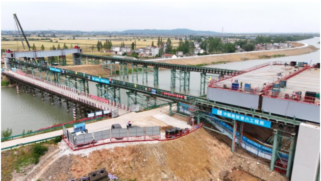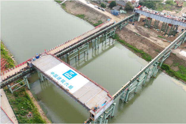 中建六局八建公司S18合宁高速路基03标项目完成首个330吨钢箱梁170米“空中漫步”