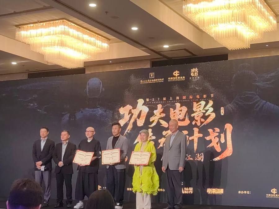 发布会现场,演员、监制于荣光,编剧张炭,经纪人、制片人袁农担任“功夫电影传承计划公益推广大使”并获颁证书。“我参与了很多著名导演、影视公司拍摄的功夫电影,那时候,我们拼着一条命,做一个让人永生难忘的片子,今天遇到大好时代,新技术和机遇给电影带来更大市场。”于荣光表示,“将功夫电影传承计划和AI的大算力结合,是崭新的课题,让我感觉特别兴奋和有趣,感谢这个时代。”