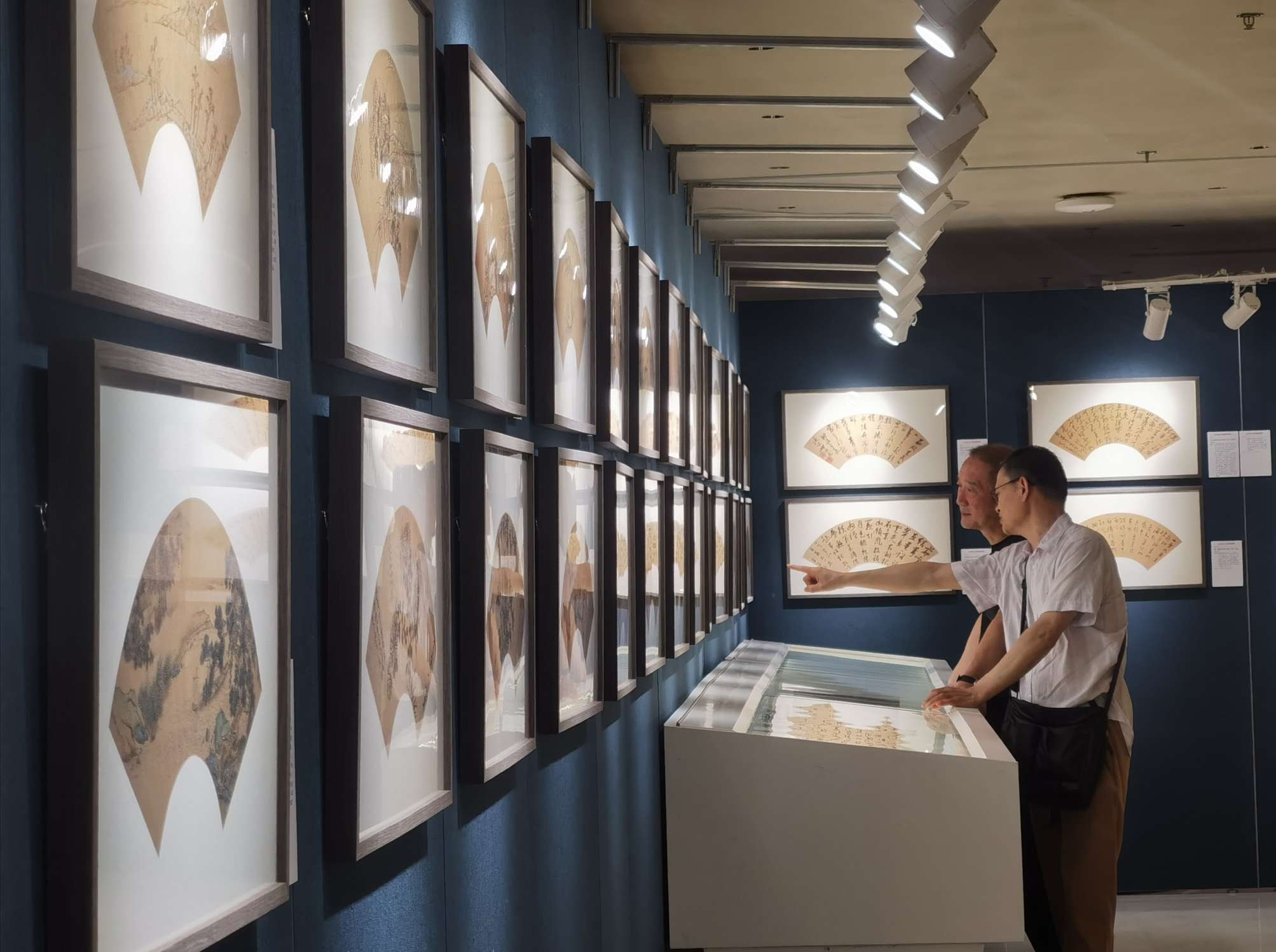 其中,元代画家倪瓒创作的《江云馆图》,创作于1355年,至今整整670周年,是清宫旧藏,画中题有乾隆皇帝乙亥年,也就是1755年的题诗。明代三十三家书画金笺扇面合锦册,包括了沈周、唐寅、文征明、仇英“吴门四家”在内的明代中期“黄金时代”吴门地区各大书画家的作品,可谓“日月之行若出其中,星汉灿烂若出其里”,是江南文化、海派文化传承发展的最佳注解。