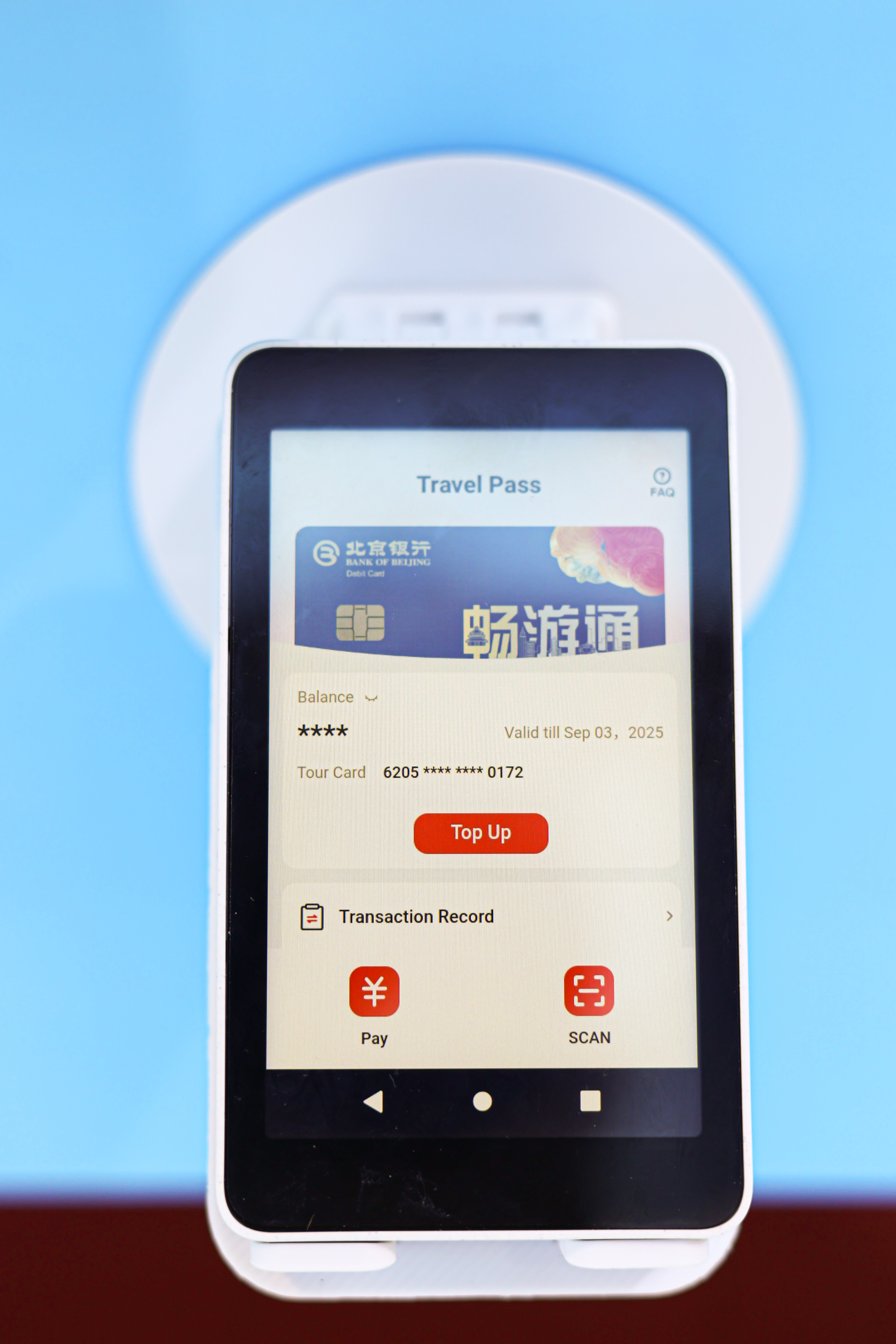 在展会现场的“融通四海”版块,可以看到一款创新产品—“畅游通”。它是北京银行联合了中国银联、北京联通实现的“两卡融合”,为入境游客提供支付、通信、翻译、地图等一站式服务。对于刚刚来到中国的外籍人士而言,“畅游通”以轻便设备和简易操作的优点,助力破解短期金融服务的痛点与难点,从而享受更友好、更便利的中国之旅。