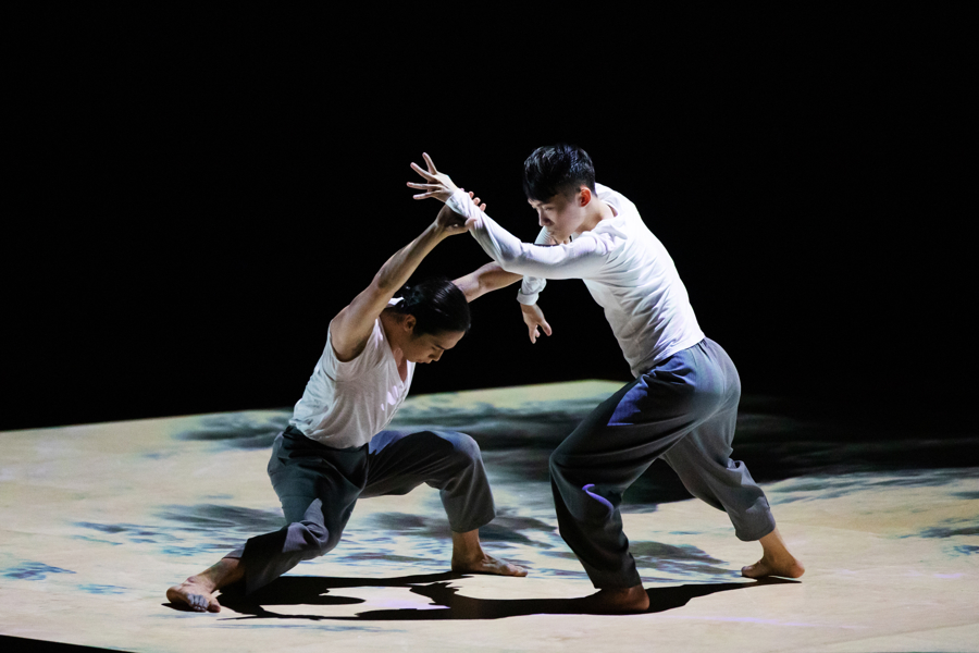 回归最原始的身体探索。舞蹈艺术家通过学习和探索武术,打破固有的肢体运动模式,以当代思维解构、重组、形构舞与武的元素。《凝》捕捉舞者处于舞蹈和武术之间而忘却形体的一瞬,呈现形神极致之美,其动作构想别树一帜,时而苍劲,时而婉约,韵味悠长,展现的身法、步法、手法灵巧但稳健,塑造出丰富的舞动质感。