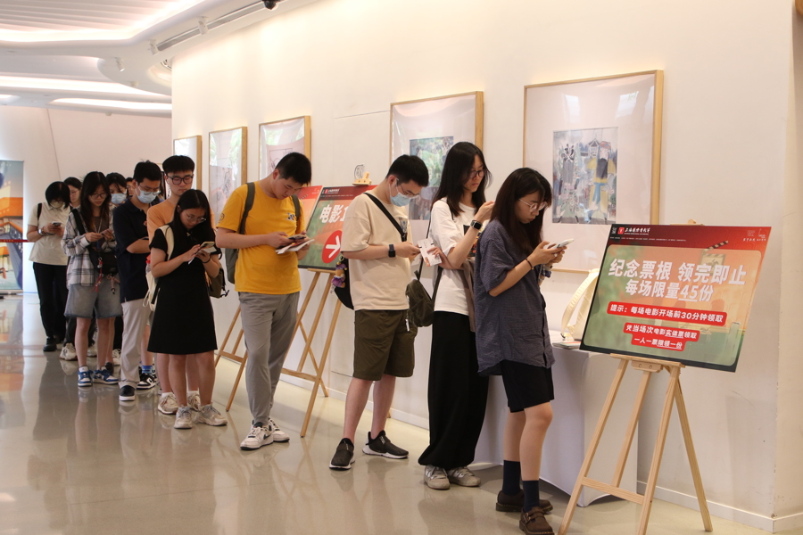 “咔嚓!”《花便当》男女主角铃木亮平和有村架纯的俊美脸庞,若隐若现透着宛平剧院招牌的旋转楼梯,拿着刚领到手的票根在大厅记录下今日份的上影节,这几乎成了影迷在宛平剧院的标准动作。为迎接本届电影节,宛平剧院为每场放映准备了45张票根。据了解,宛平今年首次用胶片制作纪念票根,虽然成本比普通透卡贵了不少,但能让影迷触摸到光影的质感与温度。朱俊寰此番一口气买了20多张电影票,《花便当》是他本届电影节领到的第一张票根。“开了个好头,希望接下来还能领到这么高质量的纪念品!”