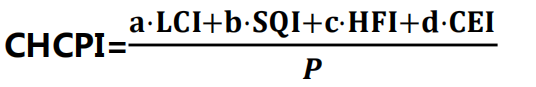 图注:中国酒店性价比指数(CHCPI)计算公式,其中a为区位条件指数的权重;b为服务质量指数的权重;c 硬件设施指数的权重;d为客户体验指数的权重。权重采用 AHP层次分析法结合消费者调研 数据,且a+b+c+d=1。P为酒店价格分值。