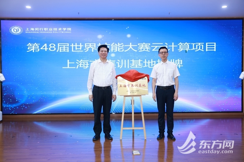 现场,第48届世界技能大赛云计算项目上海市集训基地在闵职院正式揭牌。基地的成立将进一步打通技能人才“选拔—培养—实战”的全链条,为青年人才提供高质量成长平台,推动“以赛促教、以赛促学、以赛促创”的机制在AI相关专业落地生根。
