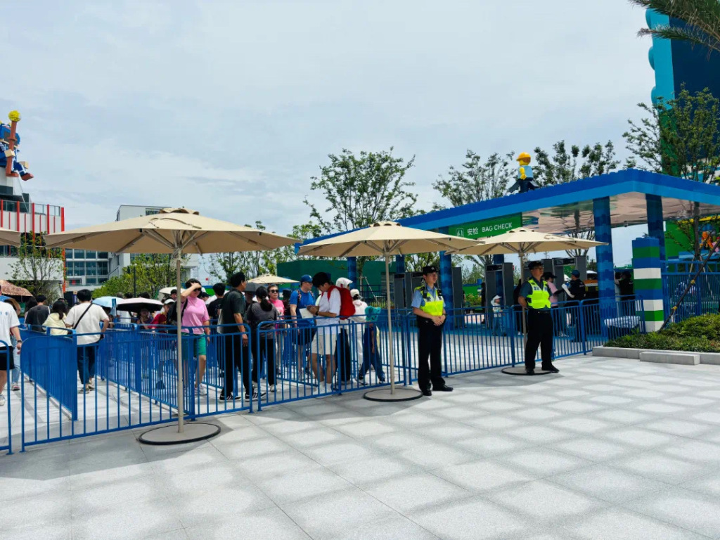 试运营首日,上海乐高乐园综合警务站也实行7×24小时全天候执勤值守,通过“无人机+视频+人力”立体巡逻体系,加强客流分析和实时监测。据警务站介绍,6月20日入园约7000多人次,安检区和票检区是重点区域,相应安排了充足的警力及辅助人员,配合乐园和商业街的保安人员,共同开展秩序维护工作。