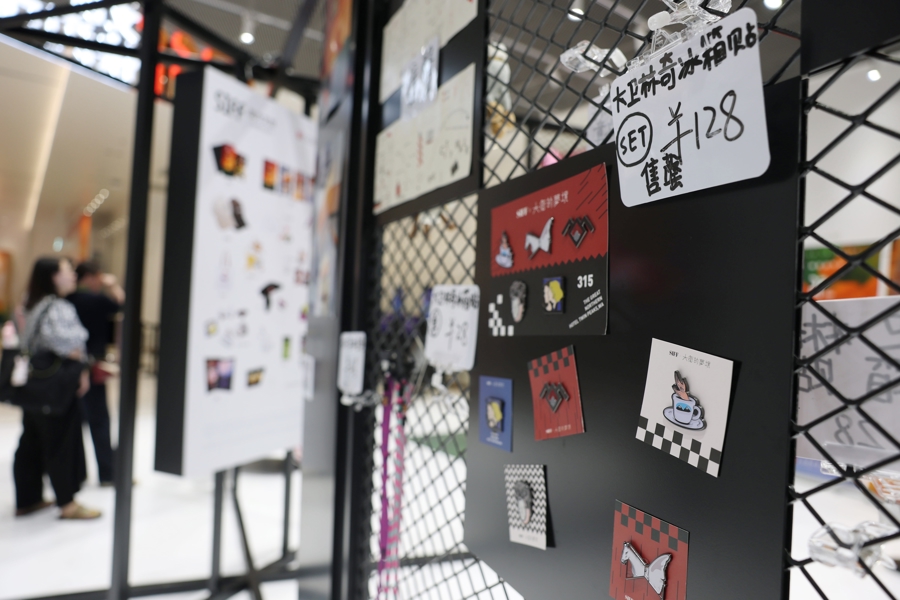 观众在上海影城SHO官方文创快闪店挑选文创。赖鑫琳 摄