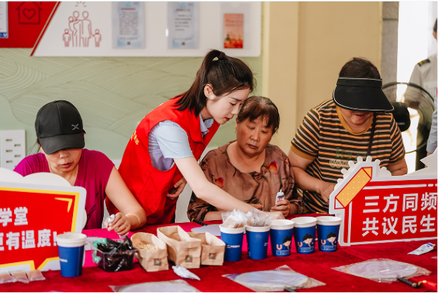 中医问诊区前排起长队,至真堂党支部张医师为老人把脉开方;适老化改造的投壶竞技区传来阵阵喝彩;非遗团扇DIY区里,薄荷与艾草的清香中,老人们制作出兼具驱蚊功效与艺术价值的手工艺品。智能健康监测设备实时记录心率、血压等数据,形成“文化体验—健康监测—医疗建议”的服务闭环。这种“非遗+康养”的创新模式,既传承了传统文化,又融入了现代健康理念。