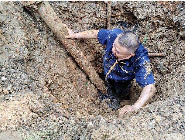 爆裂处水流如注,喷溅范围超过五米。维修值班人员胥登海师傅率先冲入水幕,尝试关闭邻近阀门降低水压。冰凉的自来水与酷暑高温形成强烈反差,瞬间将他浑身浇透,但手上关阀的动作却异常沉稳。