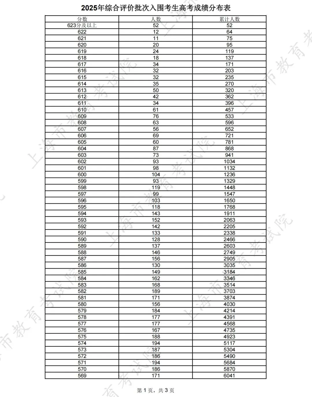 2025年综合评价批次入围考生高考成绩分布表详见下方↓