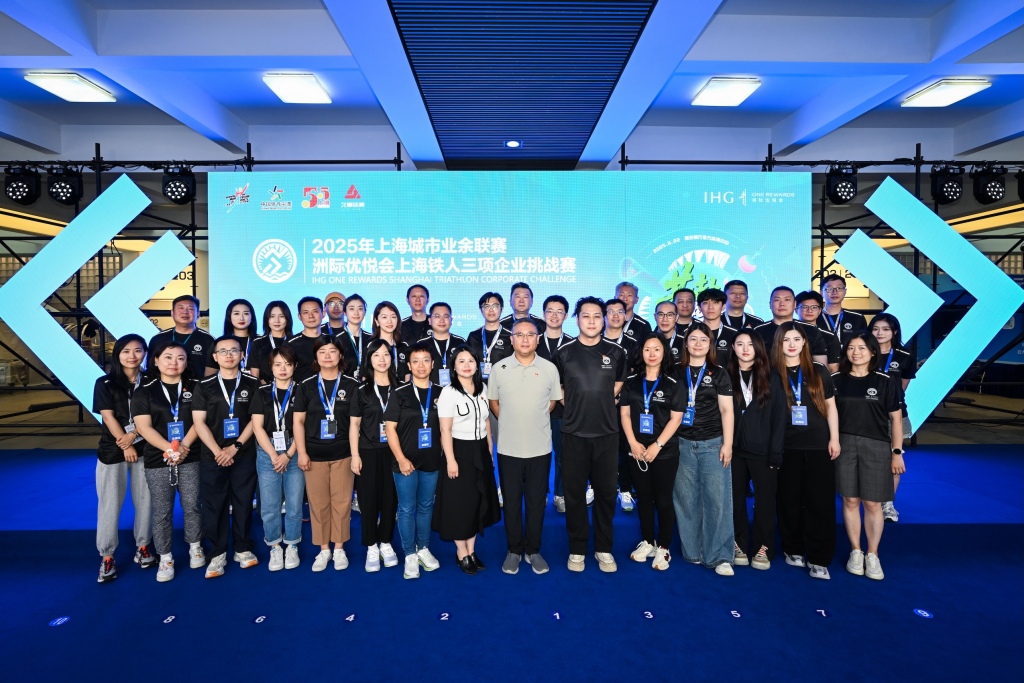 2025年上海城市业余联赛洲际优悦会上海铁人三项企业挑战赛当天在东方体育中心开赛。铁人三项是游泳、自行车和跑步这三项运动结合起来的体育运动项目,今年赛事新增设了奥运距离(标铁)的半程个人组,自行车赛段更是首次上路,奥运冠军钟天使为自行车赛段领骑。