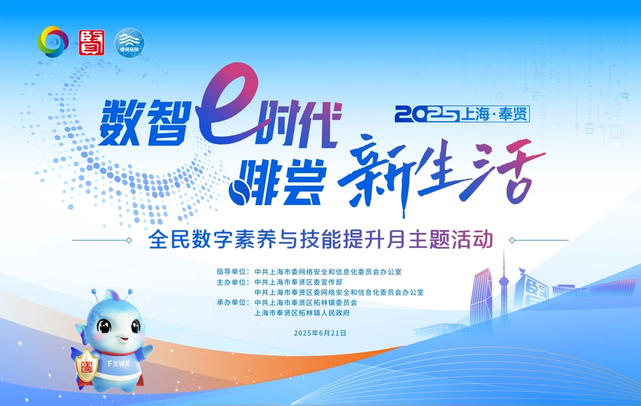 6月21日下午,“数智e时代 啡尝新生活”2025年奉贤区全民数字素养与技能提升月主题活动在柘林镇迎龙村举行。