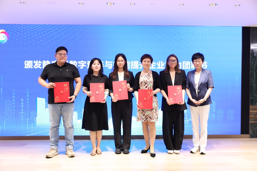 此外,静安区还成立了一支“静晖数智先锋队”志愿服务队、组建了由市北高新、支付宝、喜马拉雅、风语筑、合合信息等企业参与的助力团以及向区教师代表、医疗专家颁发聘书,共同参与到全民数字素养与技能提升工作中;其中,“静晖数智先锋队”志愿服务队由老年群体组成,致力于成为推动静安区老年人跨越数字鸿沟的重要力量。