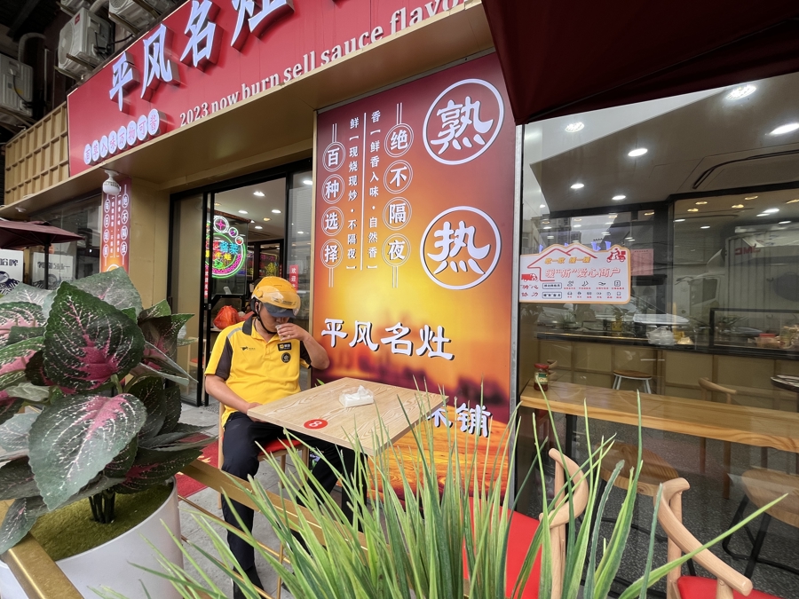 在“外卖小哥友好商户”,骑手等餐时稍作休息