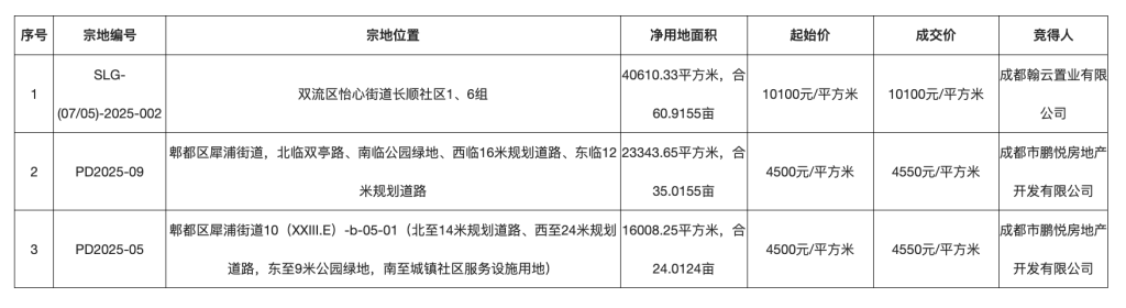 成都3宗涉宅用地总价10.89亿元成交:两宗低溢价,一宗底价