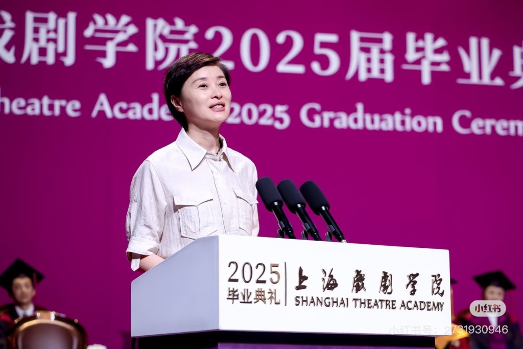 6月25日,上海戏剧学院2025届毕业典礼暨学位授予仪式举行,著名演员吴越当日作为校友代表进行了发言。